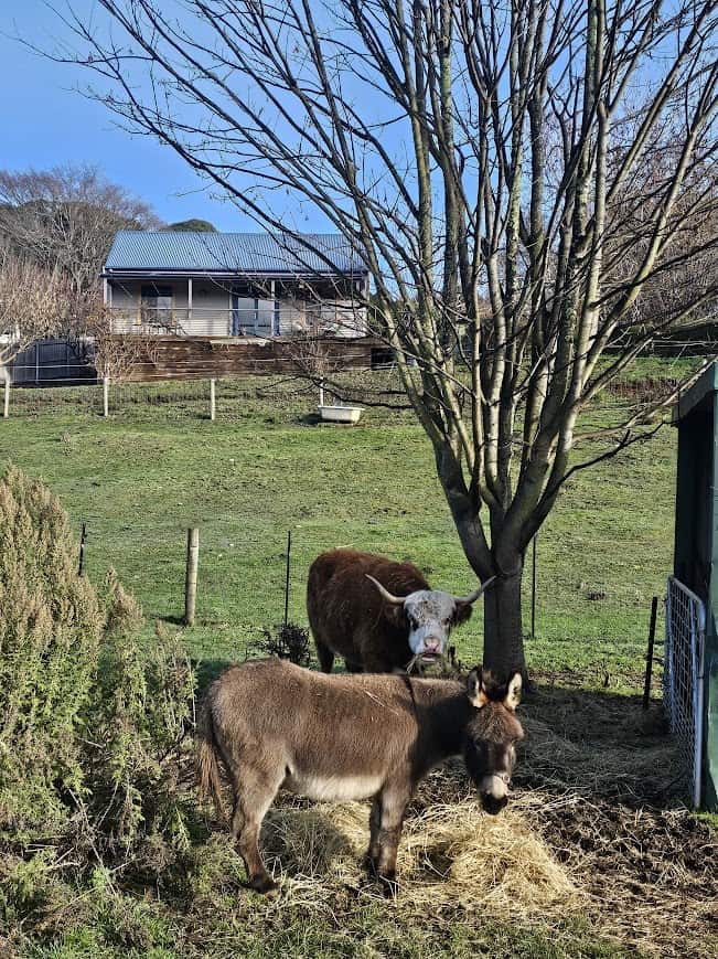 Now, every morning, the same thing happens: the drake charges over to Cedric’s food, the donkey freezes, and the grain disappears.